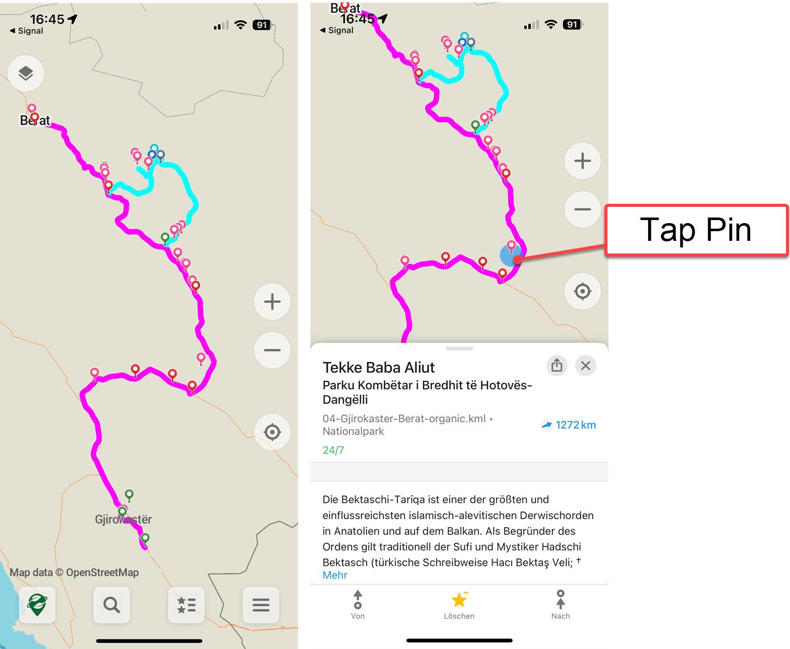 The outcome of above planning viewed with Organic.maps on my iPhone.